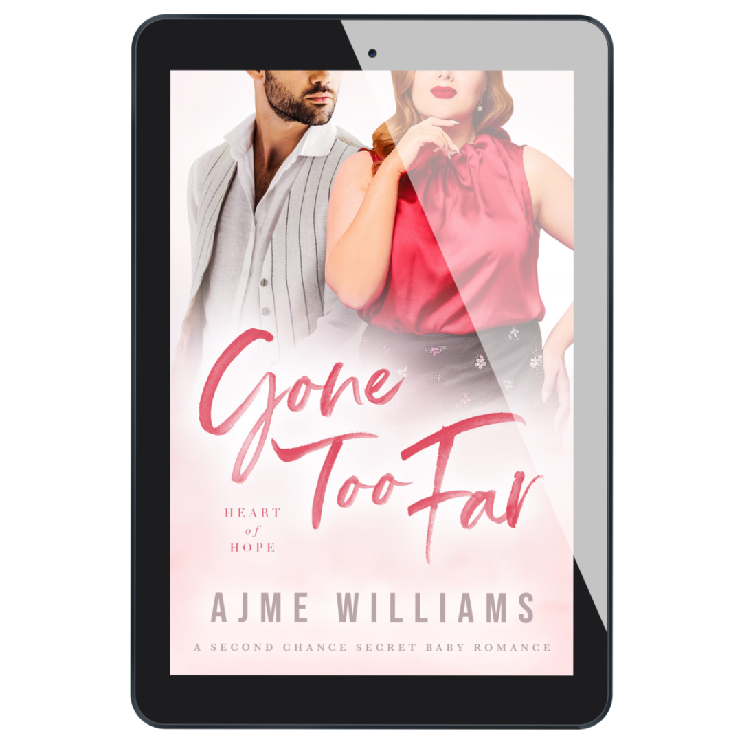 A full-length second chance secret baby romance featuring a single mom who’ll do anything to protect her super adorable twins. The perfect HEA and absolutely no cliff-hanger! ‘Gone Too Far' is a part of the Heart of Hope series but stands alone. Books do not have to be read in order.